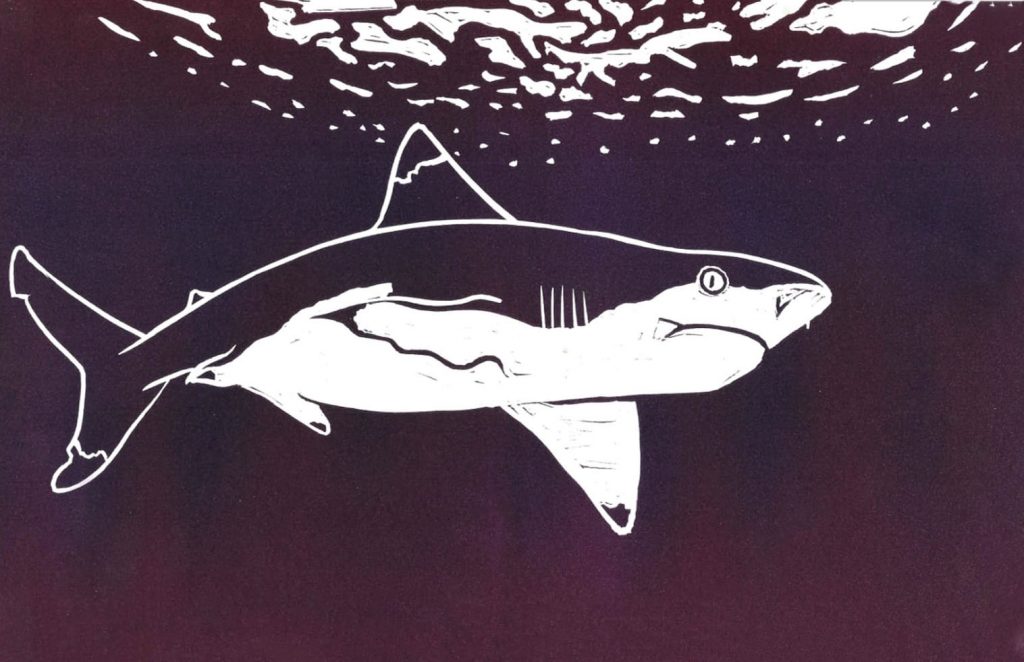 This lino print, like the print before, was inspired by a holiday destination, this one happening to be a black tipped reef shark on the island of Crete. Unlike the Whale shark print, I didn’t happen to see this animal in the wild, however i had come across the creatures jaws which I took as a souvenir.